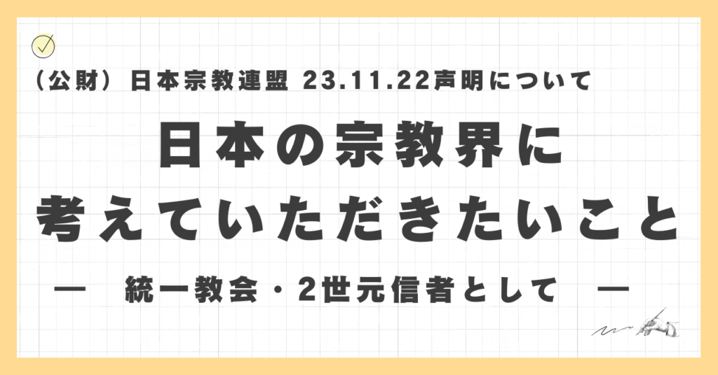 日本の宗教界に考えていただきたい事―統一教会・2世元信者として