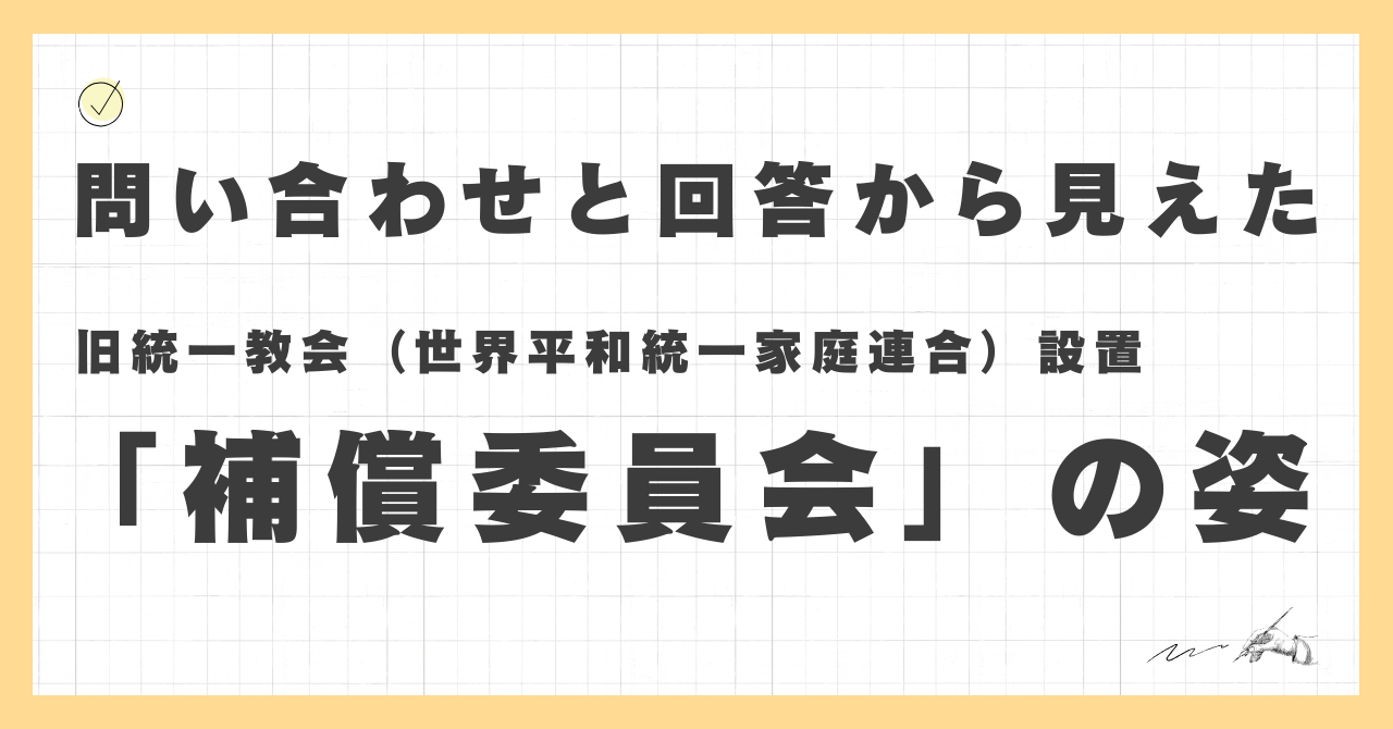 「補償委員会」から回答をいただきました | 「いのち」のゆく先 ↩︎ - 補償委員会事務局ホームページには「当委員会は家庭連合から要請を受けて設置された委員会ではありますが」との記載があります ↩︎