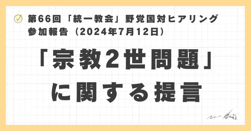 「宗教2世問題」に関する提言―’24.7.12「統一教会」野党国対ヒアリング